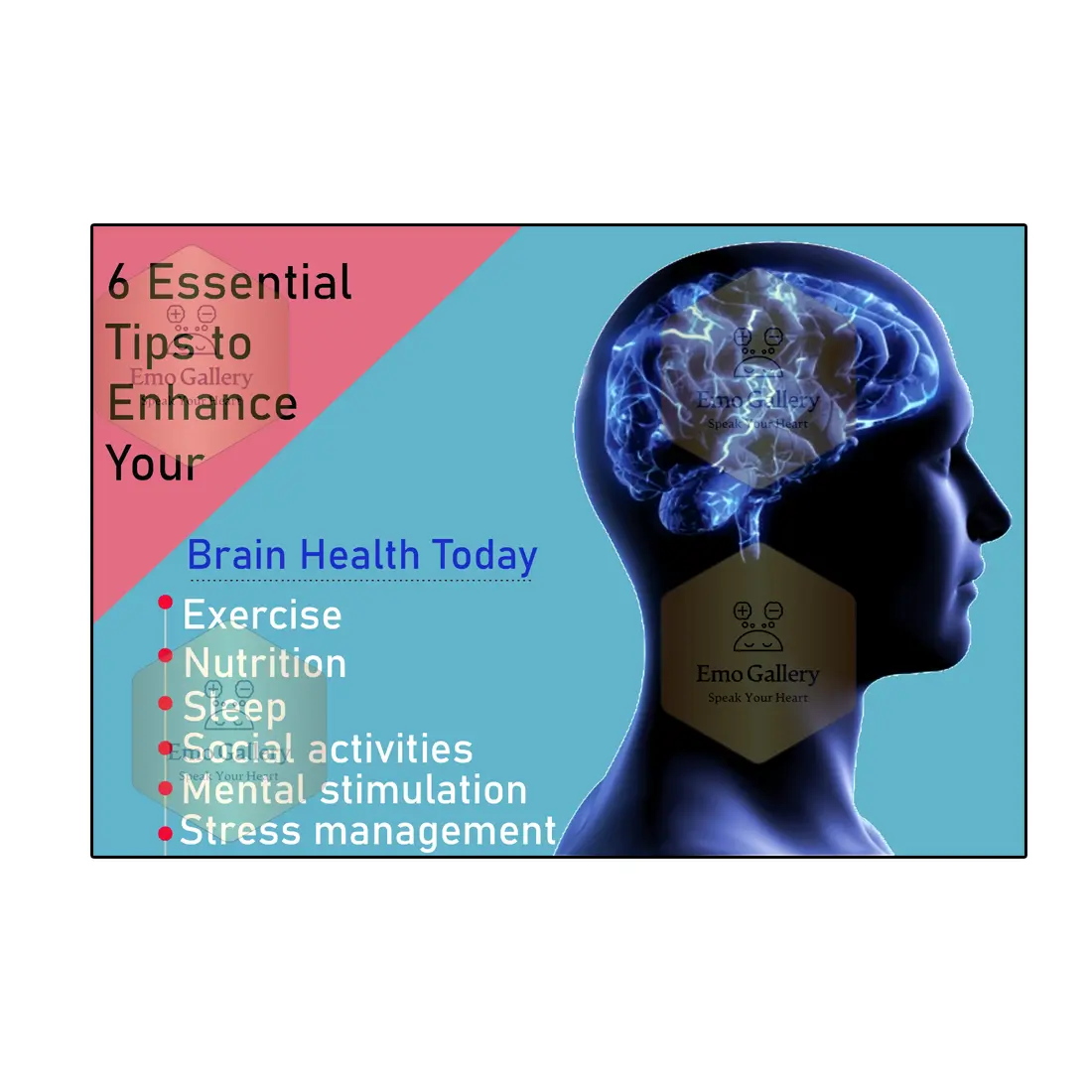 🎨 Original Design by Emo Gallery: High-resolution educational poster featuring 6 key habits for a healthy brain.