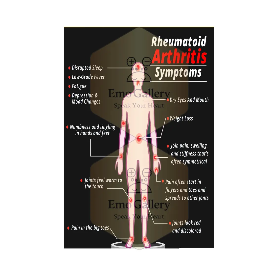 🦴 Rheumatoid Arthritis Awareness Poster: Educates patients about common symptoms of rheumatoid arthritis and autoimmune joint conditions.